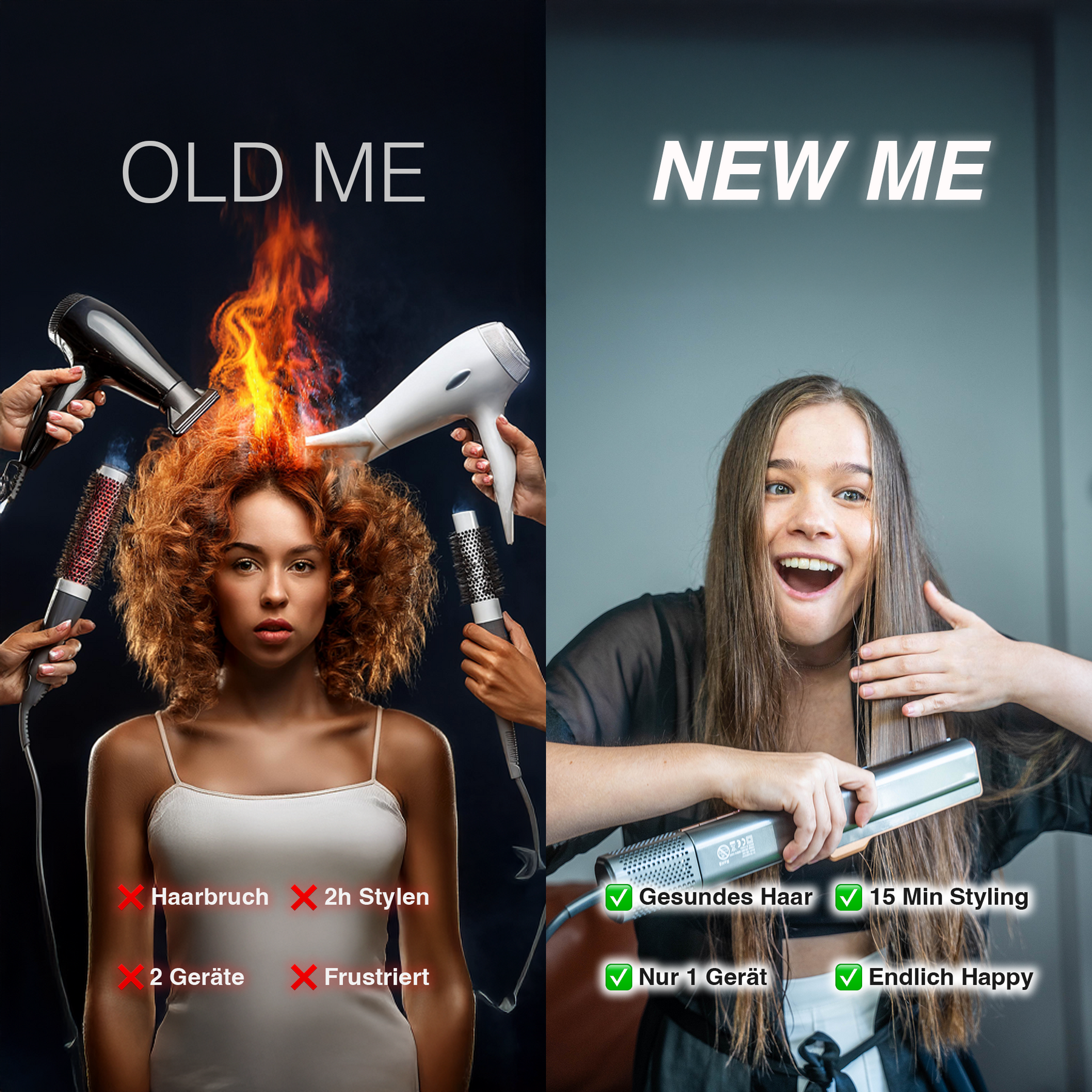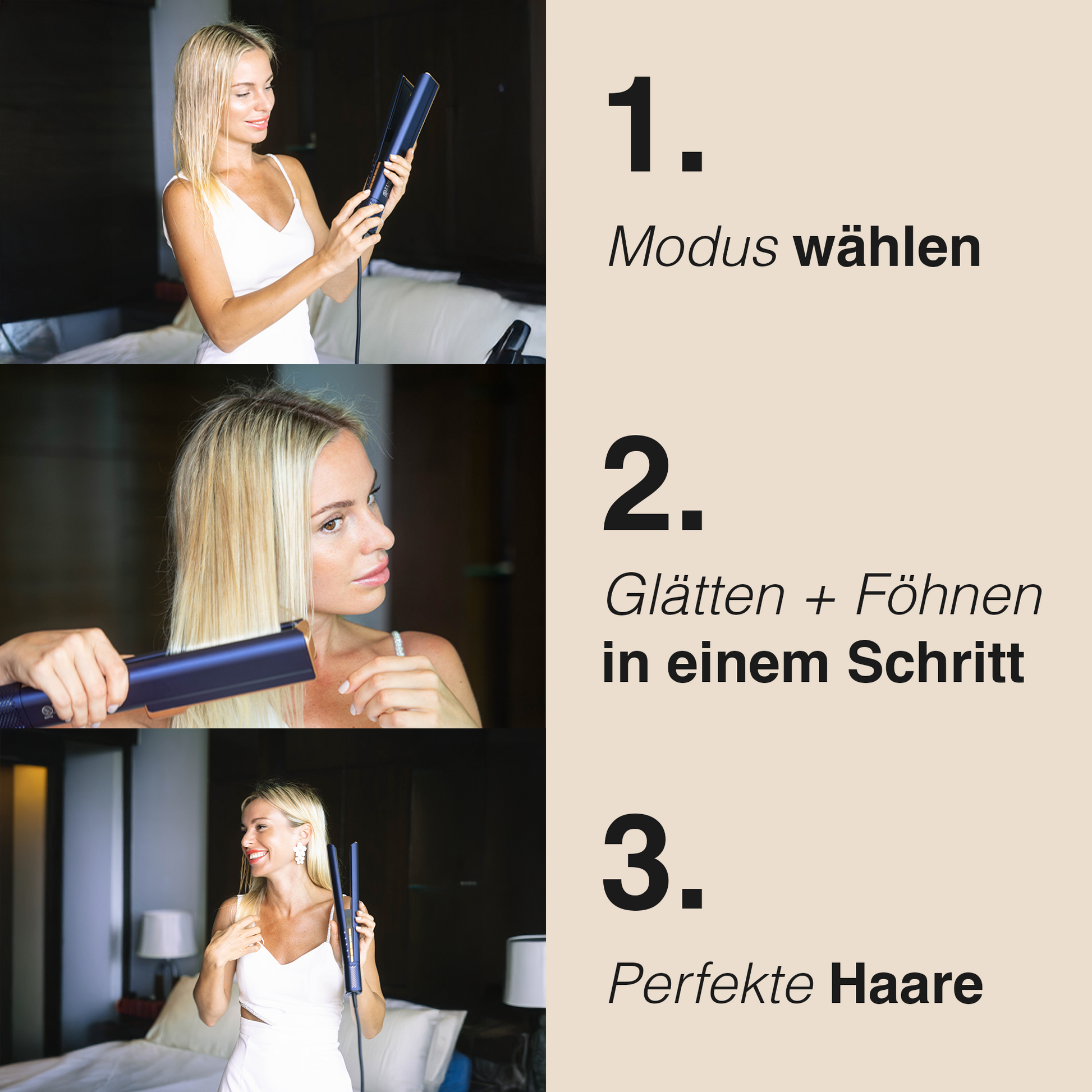 The GLIMORA® Air Straightener is the clever combination of a hair straightener and a blow dryer. It transforms frizzy hair into silky, smooth styles – in a fraction of the time. Ideal for daily styling without heat damage!